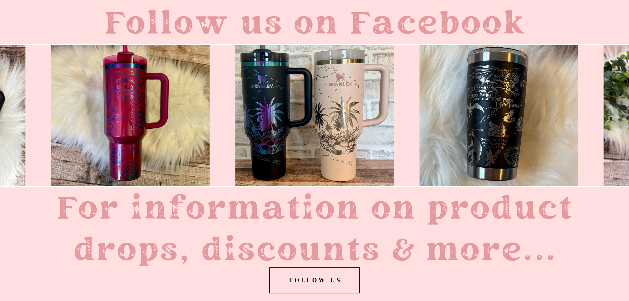 We’re always on the hunt for special and limited-edition tumblers, with new colors and designs added often. Looking for a specific brand or color? Reach out by email or text and we’ll try to source it just for you.