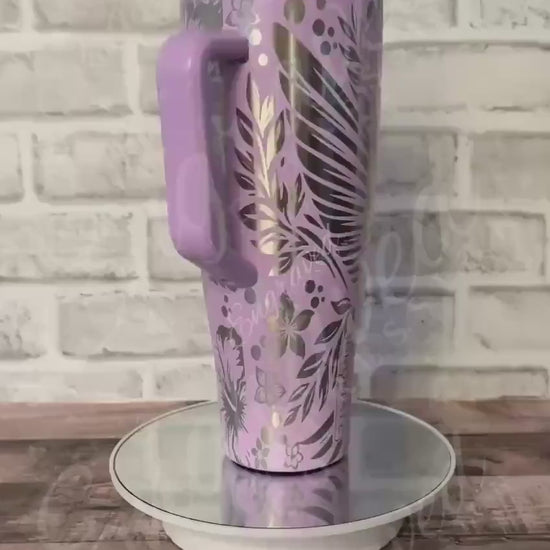 This engraved Brumate tumbler is a Lavender Brumate Era insulated beverage holder featuring a detailed hummingbird design tumbler that combines style with functionality. Designed as a custom engraved cup, this laser engraved tumbler offers full wrap engraving, making it a standout personalized travel mug for everyday use or special occasions. The custom name tumbler allows you to add any name or word, turning it into a meaningful engraved drinkware gift perfect for birthdays, religious milestones, or summer drink tumbler needs.