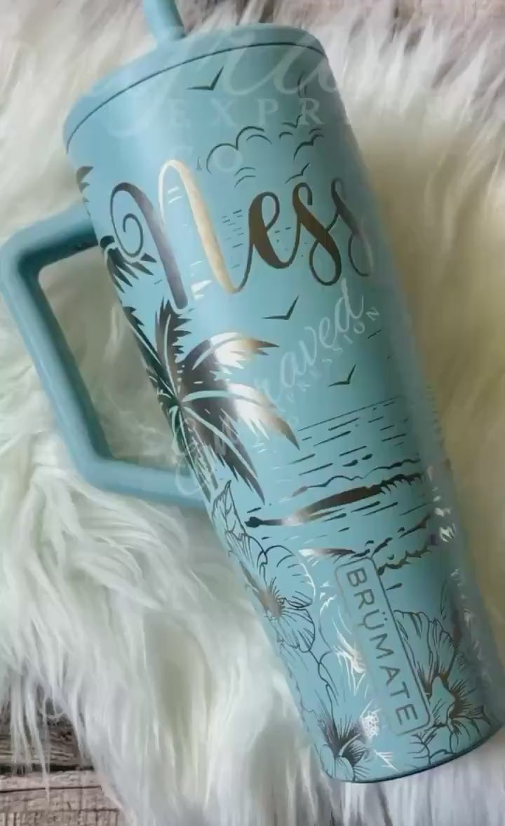 This engraved Brumate tumbler features a custom tropical beach design, making it the perfect insulated travel tumbler for your summer adventures. Crafted from high-quality stainless steel, this laser engraved cup keeps your drinks hot or cold for hours, offering a spill proof travel cup experience that fits perfectly into your active lifestyle. Personalize this custom travel mug with any name or word to create a unique engraved keepsake tumbler that doubles as a stylish vacation drinkware essential. Its durable construction and secure lid ensure no spills while you’re on the go, whether at the beach or commuting.