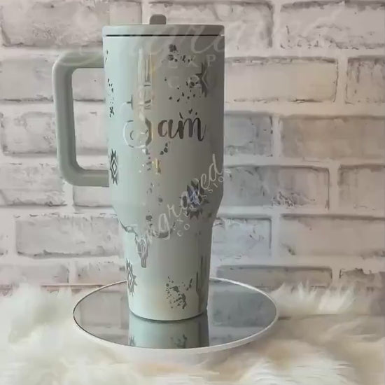 - Unique Aztec design tumbler with cactus and steerhead patterns → adds artistic flair
