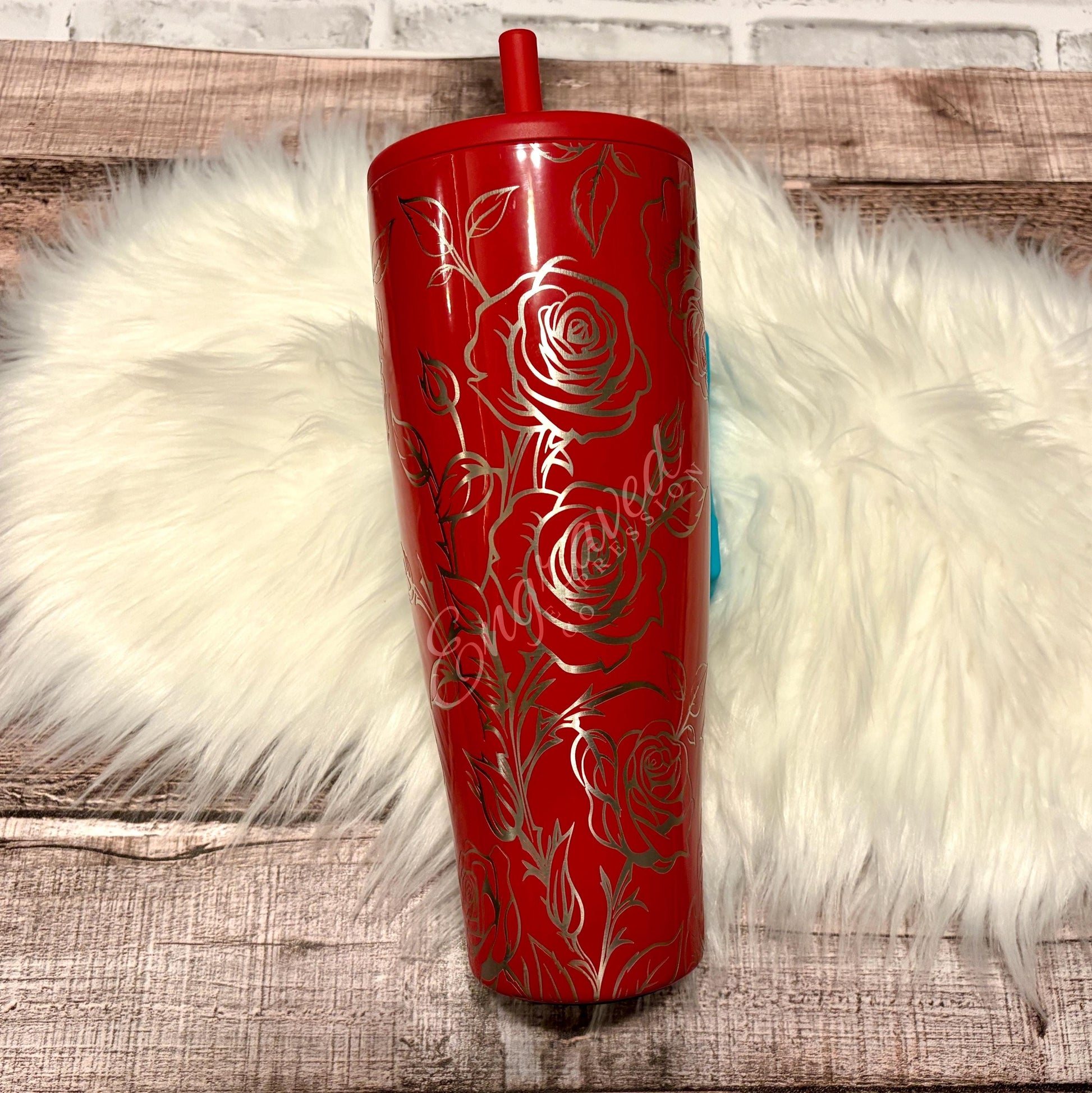This engraved rose tumbler is a personalized stainless steel Brumate Era tumbler designed to combine style and functionality in one sleek package. Featuring a laser engraved drinkware design with a full wrap engraving of a detailed rose, this custom engraved tumbler delivers elegance and durability while keeping your beverages perfectly insulated. Whether you’re looking for a birthday gift tumbler or a religious milestone gift, this stylish rose tumbler offers an insulated travel cup experience that is leak proof and built to last.