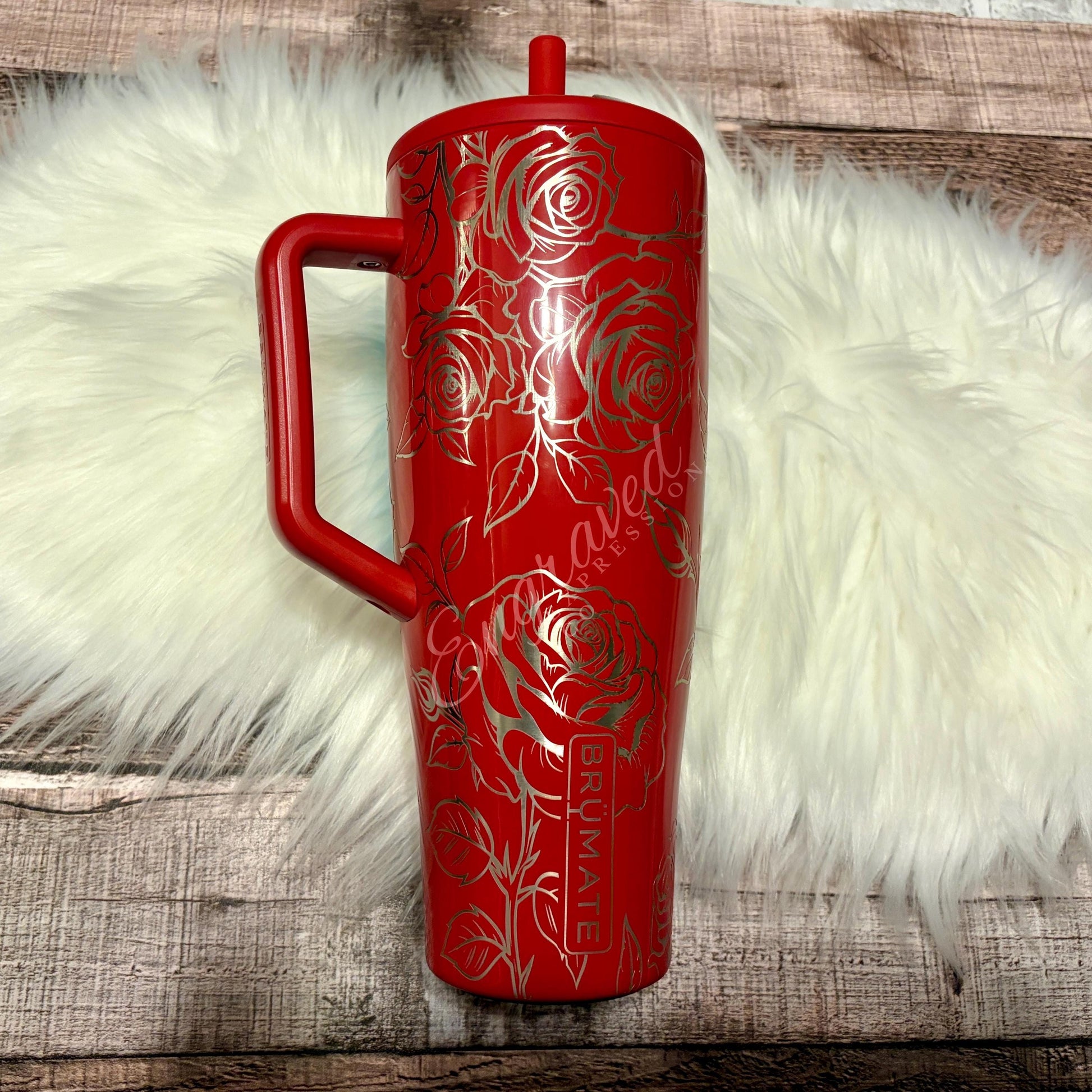 Engraved Rose Tumbler - Personalized Stainless Steel Brumate Era With Full Wrap Design