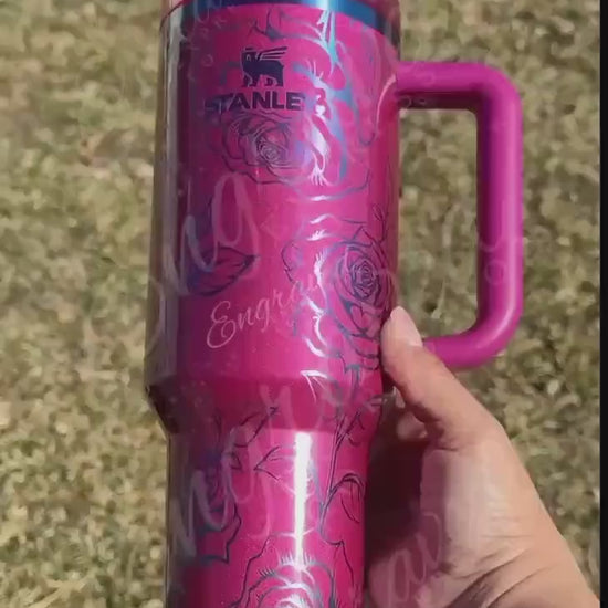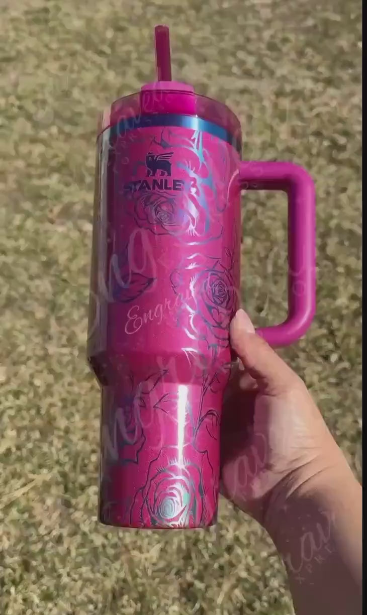 Engraved Stanley Quencher - Custom Laser Tumbler With Rose Floral Etching