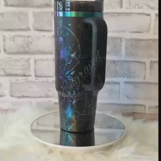 Engraved Stanley Tumbler | Black Chroma 40 oz Travel Mug with Boho Floral Design