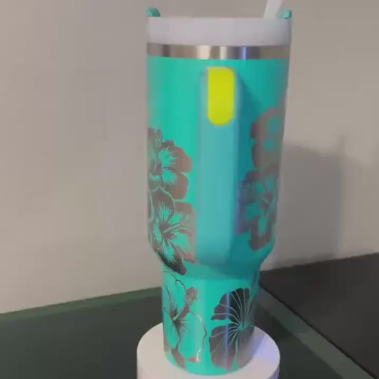 Engraved Stanley Tumbler - Hibiscus Floral Travel Insulated Tumbler with Laser Design