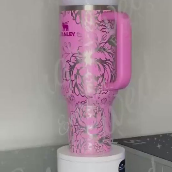 Engraved Stanley Tumbler | Peony Flower Design | Vacuum Insulated Double Wall Cup