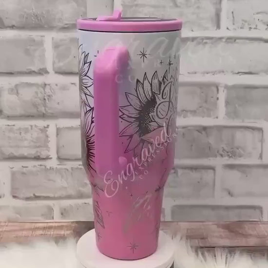 Engraved Sunflower Tumbler | Candy Coated Stainless Steel Double Wall Travel Mug