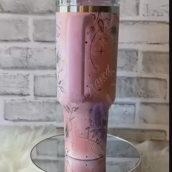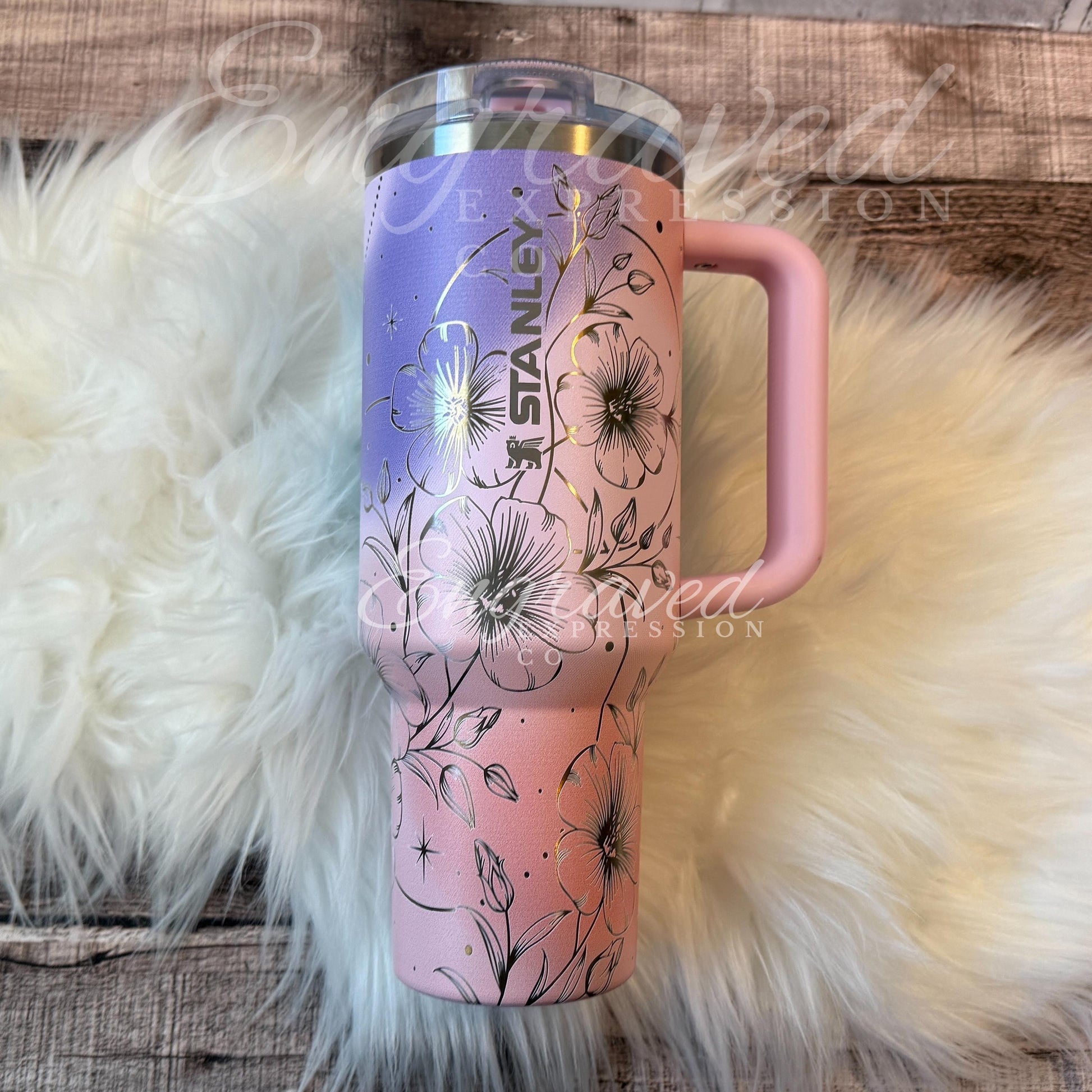 Laser Engraved Tumbler - Custom Boho Floral Design | Stanley Protour Flip Straw