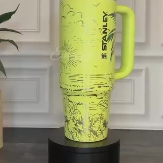 Laser Engraved Tumbler - Stanley Protour Cup With Full Wrap Beach Design