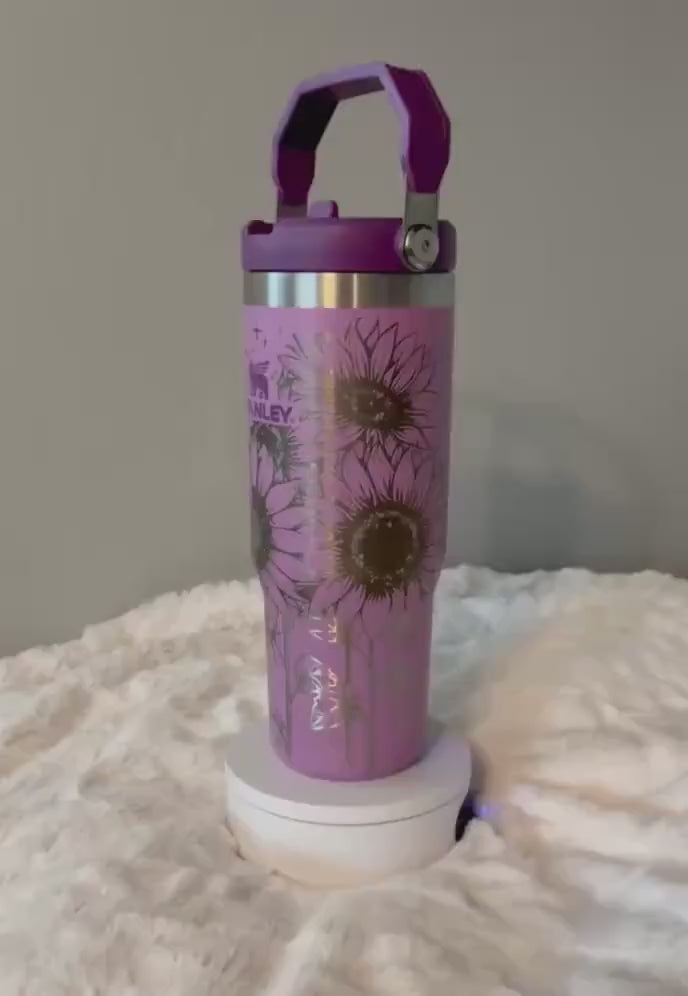 Stanley IceFlow Tumbler – 30 oz Insulated Lilac Cup with Engraved Sunflower Design