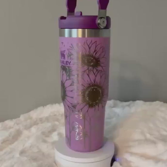 Stanley IceFlow Tumbler – Lilac 30 oz | Engraved Sunflower Design | Back to School Cup